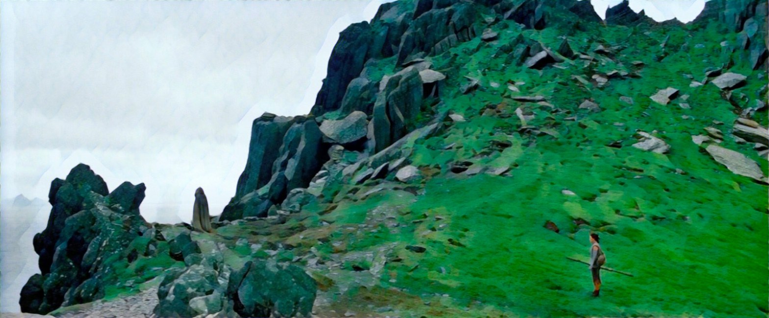 When Rey walks up those steps to greet Luke Skywalker the past and present collide, bringing with them an ocean of change encircling them. The camera spins around, unifying the past and present as they embark towards an uncertain future.